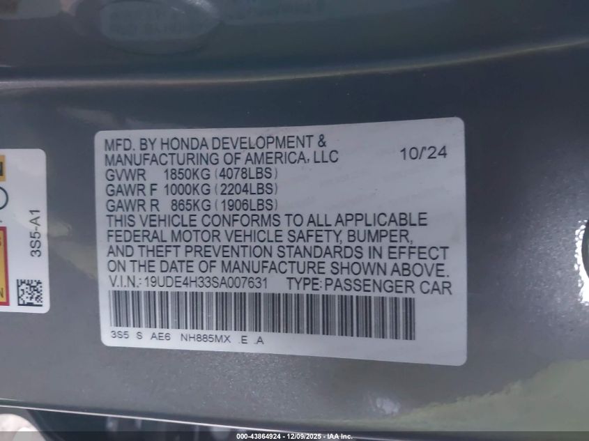 2025 ACURA INTEGRA 2025 року Бензин, 1.5, Передній привід, vin - 19UDE4H33SA007631 з США