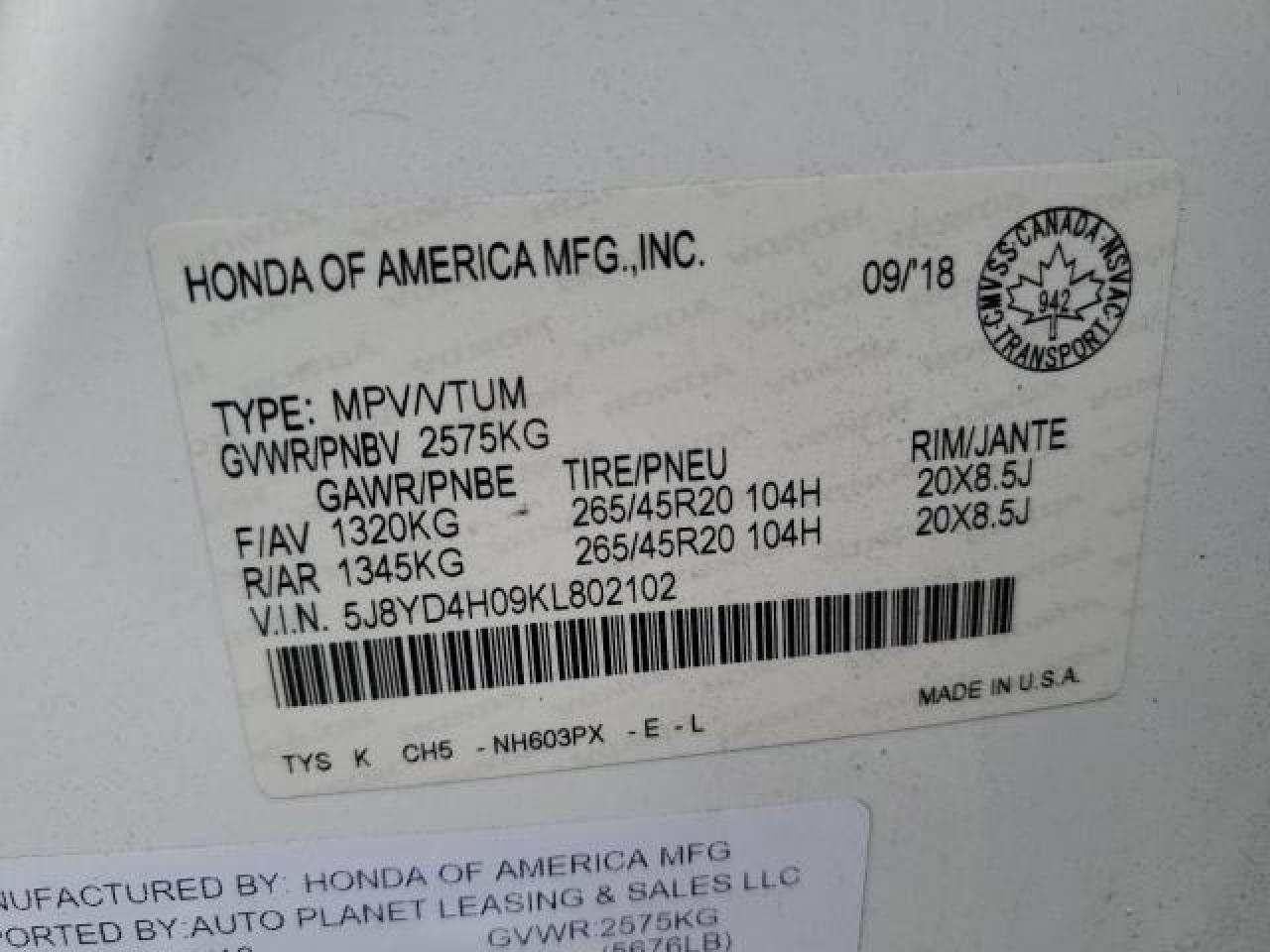 Колір БілийЦиліндри 6Привід Повний привідVIN 5J8YD4H09KL802102Стан НевідомоУшкодження Передня або задняДата аукціону 2025-07-01