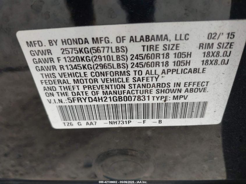 Колір ЧорнийЦиліндри 6Привід Повний привідVIN 5FRYD4H21GB******Стан НевідомоУшкодження Передня ліваДата аукціону 2025-08-26