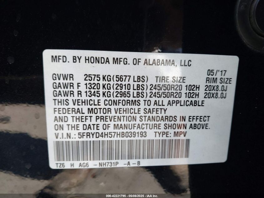 Колір ЧорнийЦиліндри 6Привід Повний привідVIN 5FRYD4H57HB******Стан НевідомоУшкодження Задня праваДата аукціону 2025-06-12