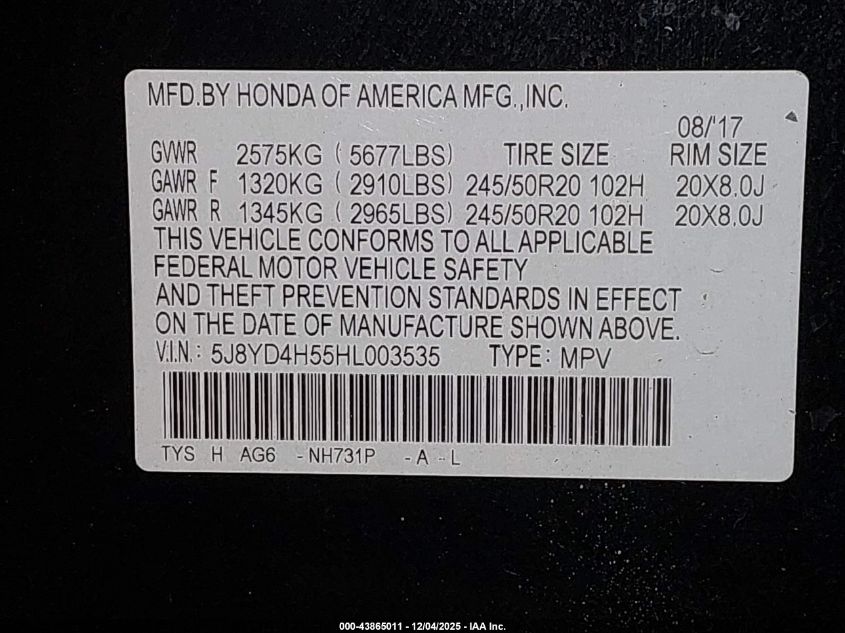 2017 ACURA MDX 2017 року Бензин, 3.5, Повний привід, vin - 5J8YD4H55HL003535 з США