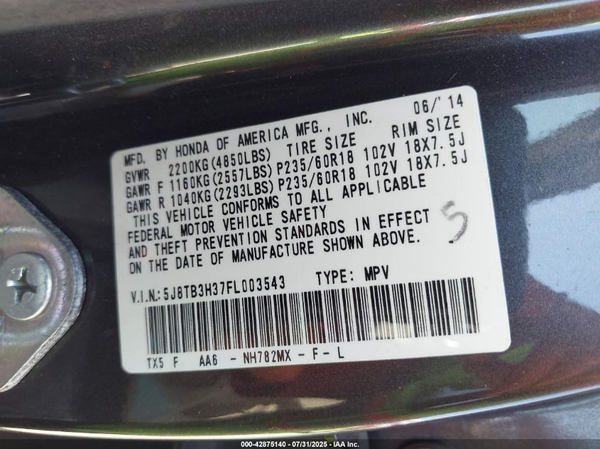 2015 ACURA RDX 2015 року Бензин, 3.5, Передній привід, vin - 5J8TB3H37FL****** з США