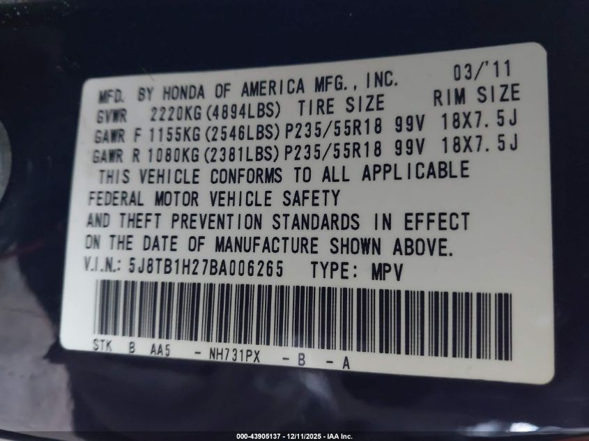 2011 ACURA RDX