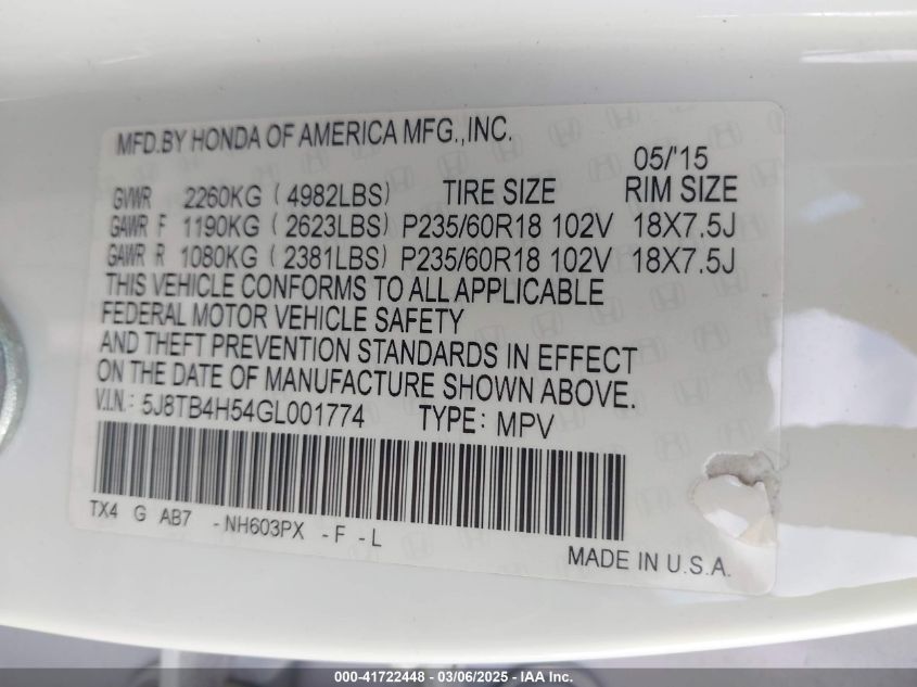 2016 ACURA RDX 2016 року Бензин, 3.5, Повний привід, vin - 5J8TB4H54GL****** з США