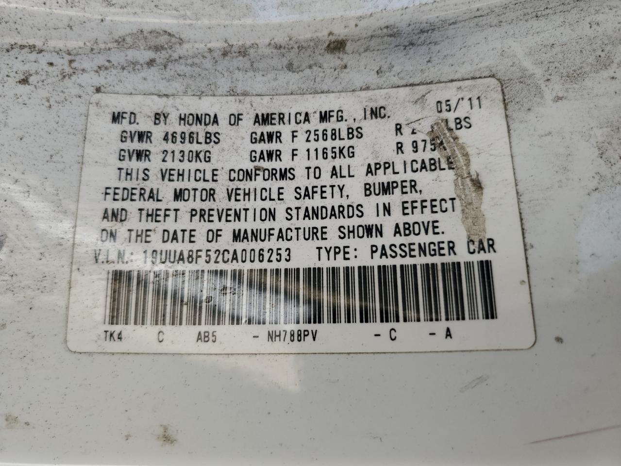 Колір БілийЦиліндри 6VIN 19UUA8F52CA006253Стан НевідомоУшкодження Передня або задняДата аукціону 2025-12-05