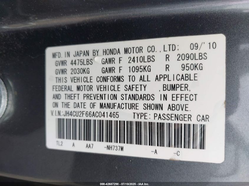 2010 ACURA TSX 2010 року Бензин, 2.4, Передній привід, vin - JH4CU2F66AC****** з США