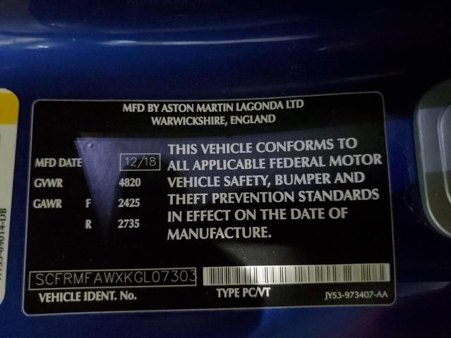 2019 ASTON MARTIN DB11 2019 року Бензин, 4.0, Задній привід, vin - SCFRMFAWXKGL07303 з США