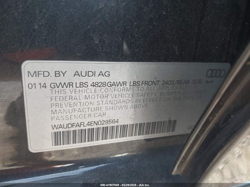 2014 AUDI A4 2014 року Бензин, 2.0, Повний привід, vin - WAUDFAFL4EN****** з США