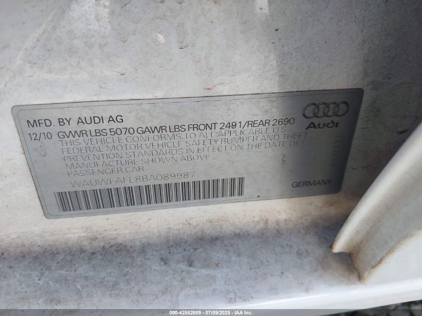 2011 AUDI A4 2011 року Бензин, 2.0, Повний привід, vin - WAUWFAFL8BA****** з США