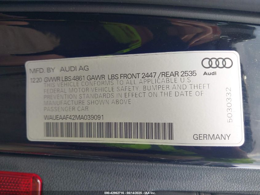 2021 AUDI A4 2021 року Бензин, 2.0, Повний привід, vin - WAUEAAF42MA039091 з США
