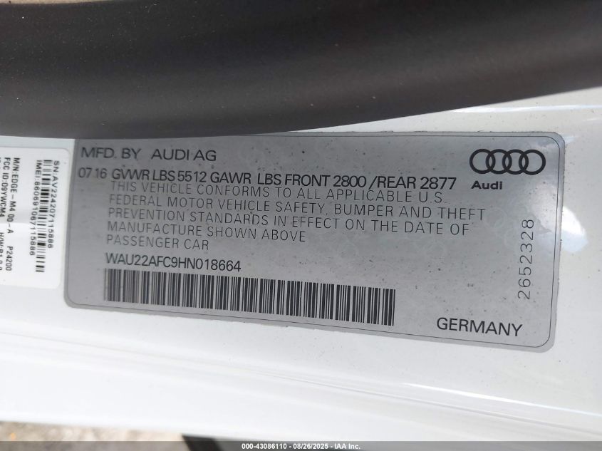 2017 AUDI A7 2017 року Бензин, 3.0, Повний привід, vin - WAU22AFC9HN018664 з США