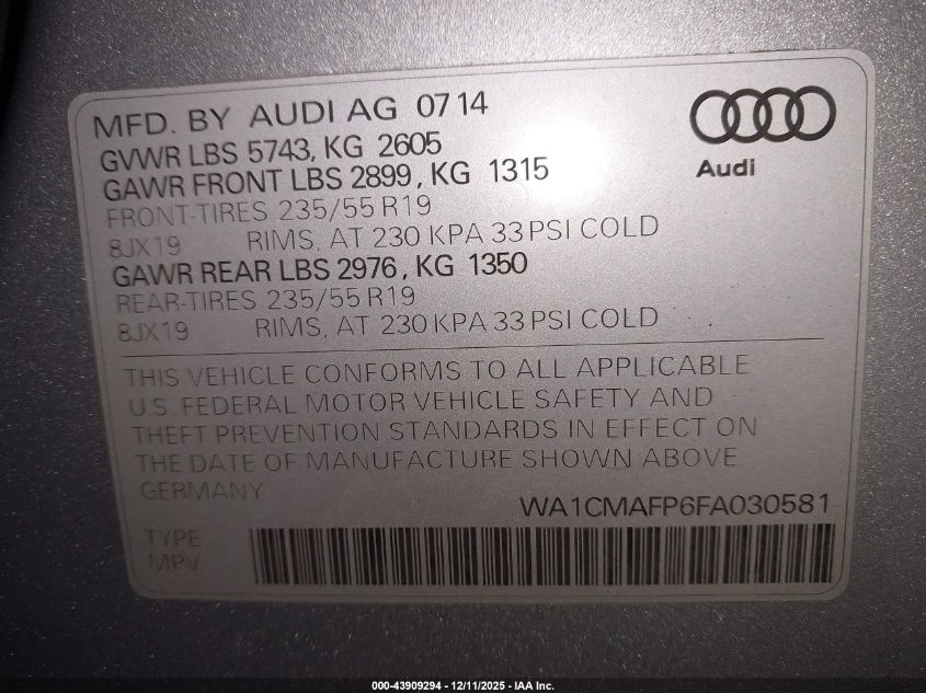 2015 AUDI Q5 2015 року Дизель, 3.0, Повний привід, vin - WA1CMAFP6FA030581 з США