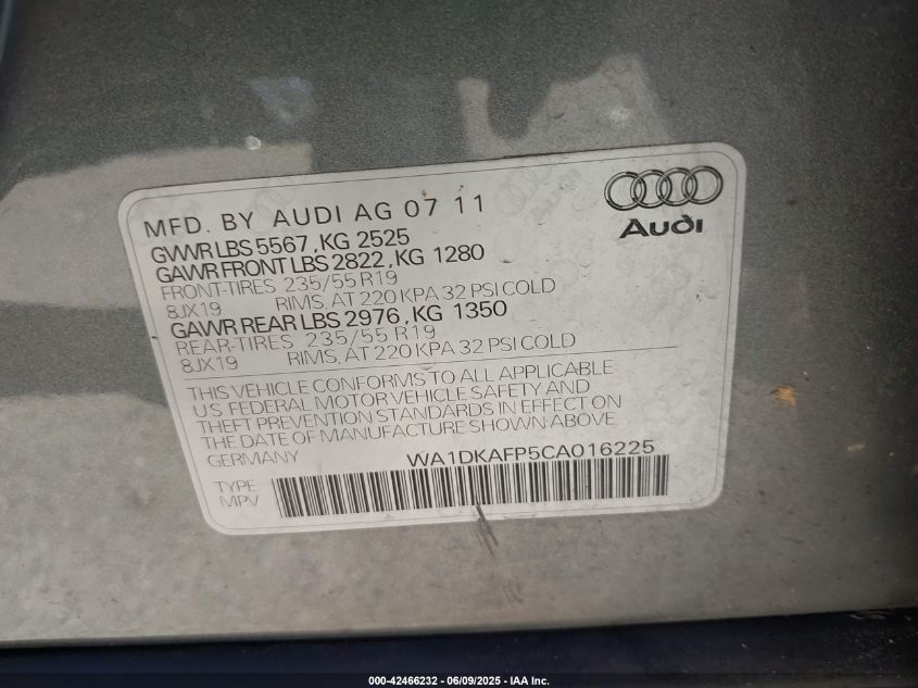 2012 AUDI Q5 2012 року Бензин, 3.2, Повний привід, vin - WA1DKAFP5CA****** з США