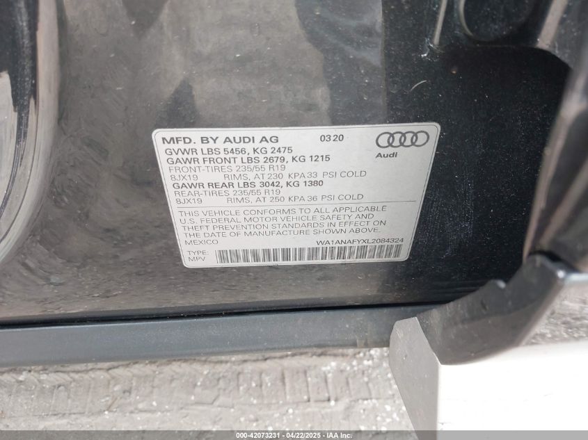 2020 AUDI Q5 2020 року Бензин, 2.0, Повний привід, vin - WA1ANAFYXL2****** з США