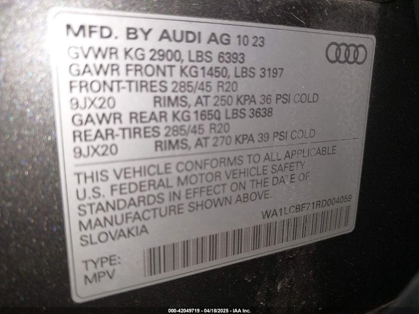 2024 AUDI Q7 2024 року Бензин, 2.0, Повний привід, vin - WA1LCBF71RD****** з США