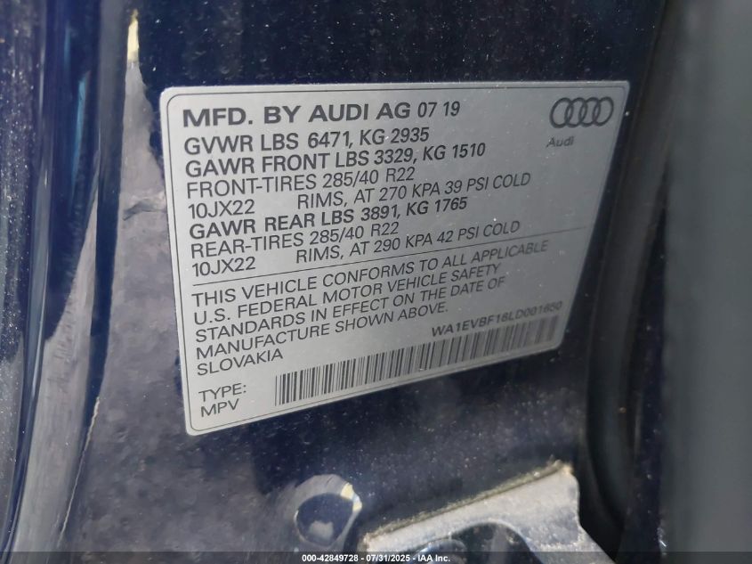 2020 AUDI Q8 PREMIUM PLUS S-LINE
