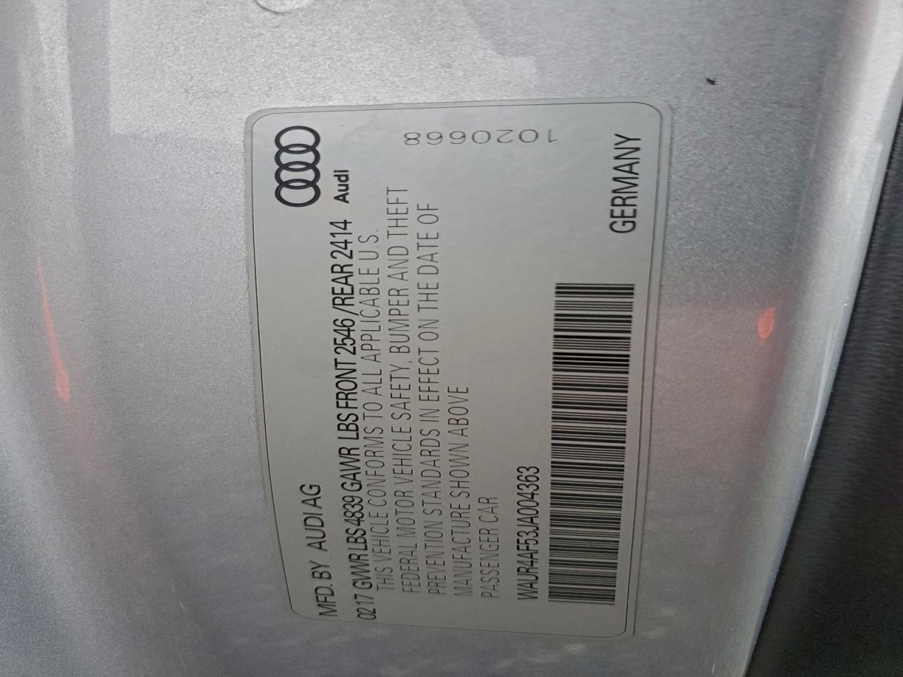 Колір СрібнийЦиліндри 6Привід Повний привідVIN WAUR4AF53JA004363Стан Заводиться та їде (перевірено)Ушкодження З боківДата аукціону 2025-12-08 AutoRIA