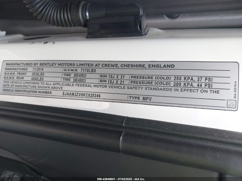 2019 BENTLEY BENTAYGA