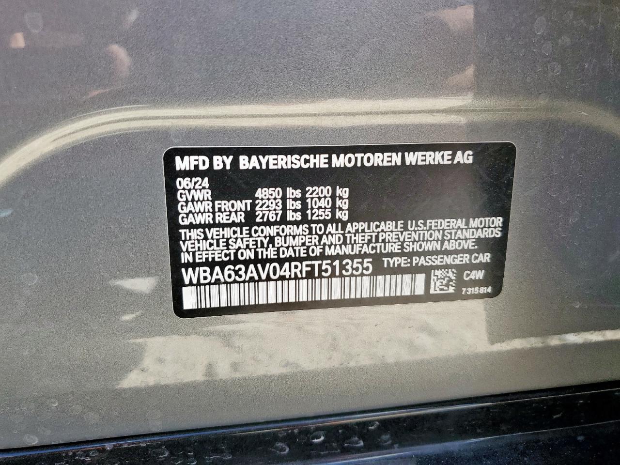 2024 BMW 4 SERIES GRAN COUPE 2024 року Бензин, 2.0, Задній привід, vin - WBA63AV04RFT51355 з США