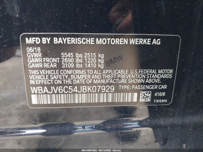 Колір ЧорнийЦиліндри 6Привід Повний привідVIN WBAJV6C54JB******Стан НевідомоУшкодження Ліва сторонаДата аукціону 2025-09-25
