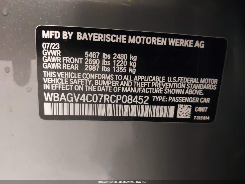 2024 BMW 8 SERIES 2024 року Бензин, 3.0, Повний привід, vin - WBAGV4C07RC****** з США