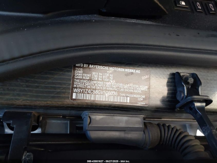 2016 BMW I3 2016 року Гібрид, 0.7, Задній привід, vin - WBY1Z4C58GV505336 з США