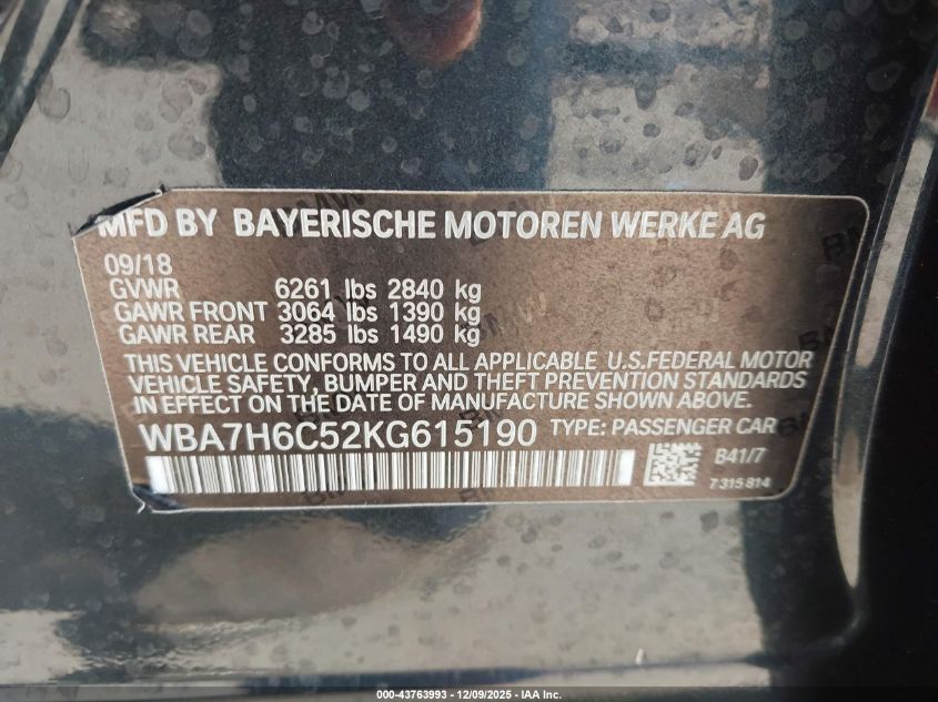 Колір СірийЦиліндри 12Привід Повний привідVIN WBA7H6C52KG615190Стан СтаціонарноУшкодження Передня права