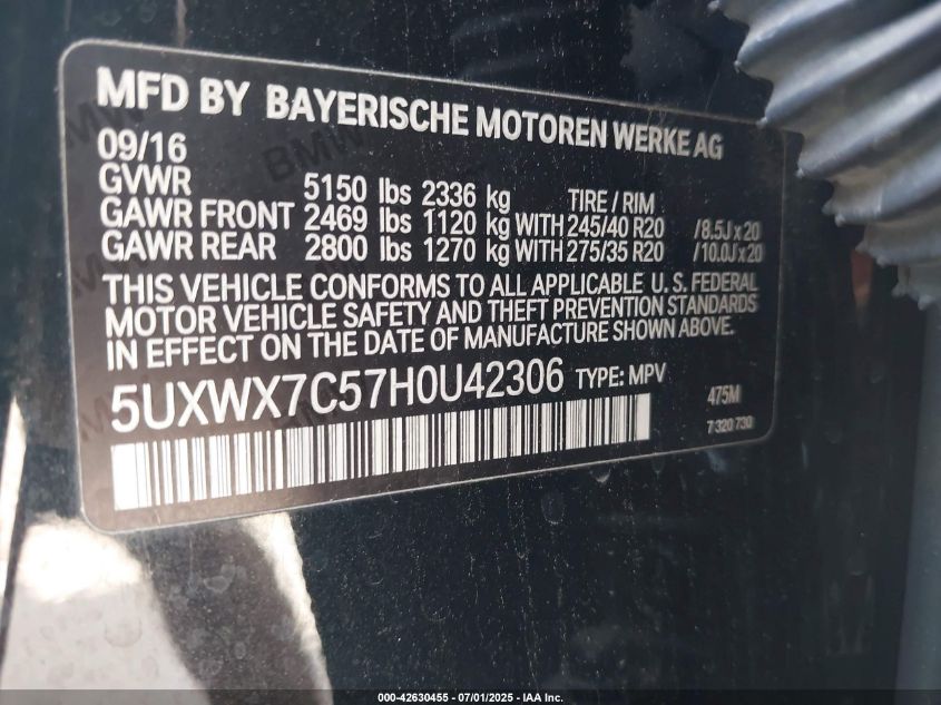 2017 BMW X3 2017 року Бензин, 3.0, Повний привід, vin - 5UXWX7C57H0****** з США