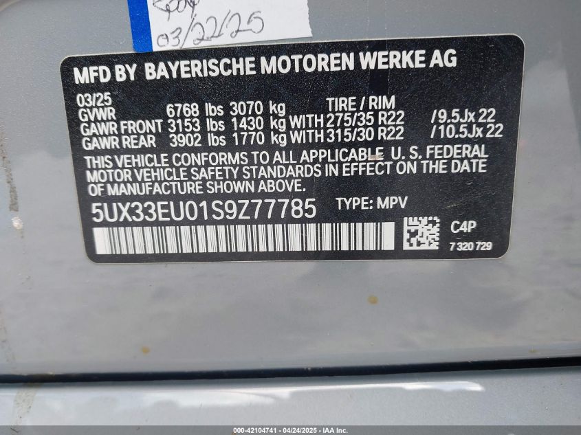 2025 BMW X5 2025 року Бензин, 4.4, Повний привід, vin - 5UX33EU01S9****** з США