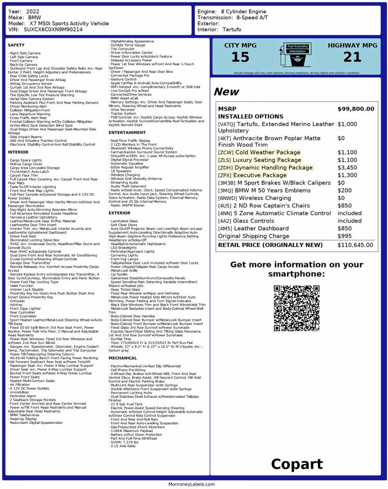 2022 BMW X7 2022 року Бензин, 4.4, Повний привід, vin - 5UXCX6C0XN9M90214 з США