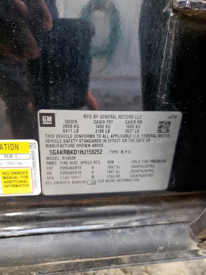 Колір ЧорнийЦиліндри 6VIN 5GAKRBKD1HJ158252Стан Заводиться та їде (перевірено)Ушкодження НезначніДата аукціону 2025-09-10