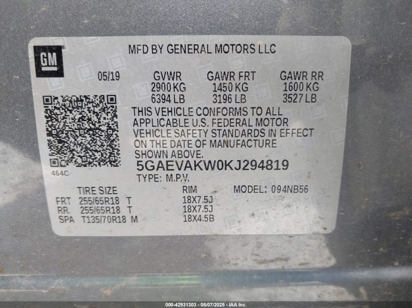 2019 BUICK ENCLAVE 2019 року Бензин, 3.6, Повний привід, vin - 5GAEVAKW0KJ294819 з США