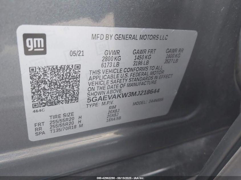 2021 BUICK ENCLAVE 2021 року Бензин, 3.6, Повний привід, vin - 5GAEVAKW3MJ****** з США