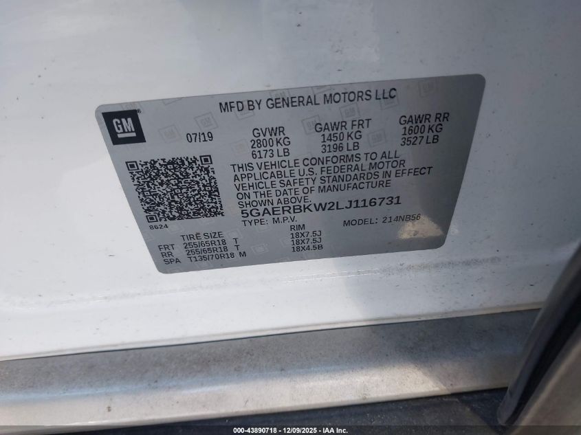 2020 BUICK ENCLAVE 2020 року Бензин, 3.6, Передній привід, vin - 5GAERBKW2LJ116731 з США
