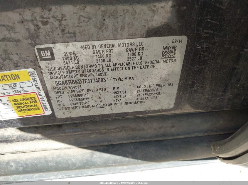 2015 BUICK ENCLAVE 2015 року Бензин, 3.6, Передній привід, vin - 5GAKRBKD7FJ174503 з США