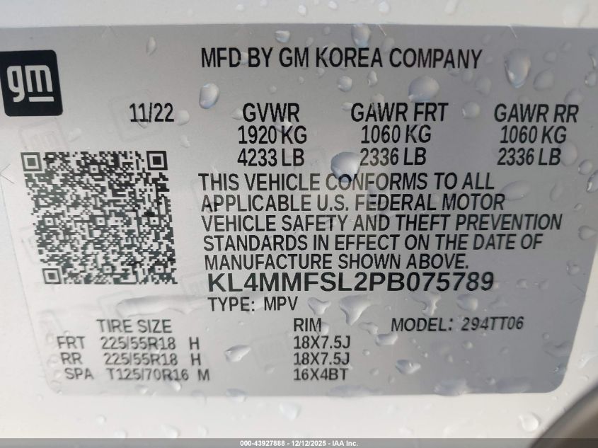 Колір БілийЦиліндри 3Привід Передній привідVIN KL4MMFSL2PB075789Стан СтаціонарноУшкодження Передня або задня