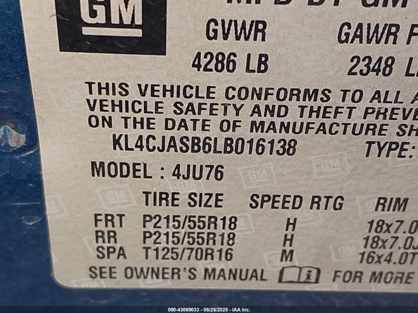 2020 BUICK ENCORE 2020 року Бензин, 1.4, Передній привід, vin - KL4CJASB6LB016138 з США