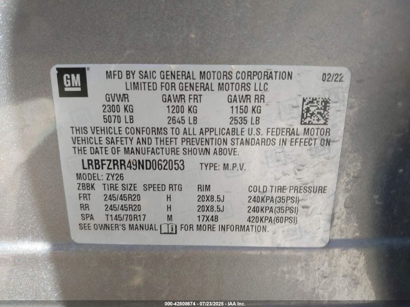 Колір СірийЦиліндри 4Привід Передній привідVIN LRBFZRR49ND062053Стан Заводиться та їде (перевірено)Ушкодження ЗадняДата аукціону 2025-10-14