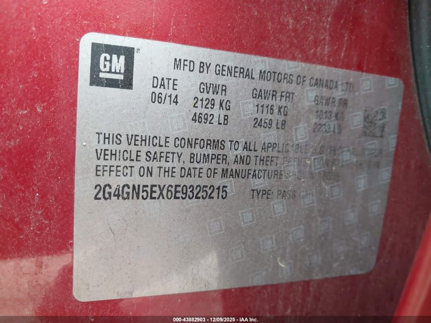 2014 BUICK REGAL 2014 року Бензин, 2.0, Передній привід, vin - 2G4GN5EX6E9325215 з США
