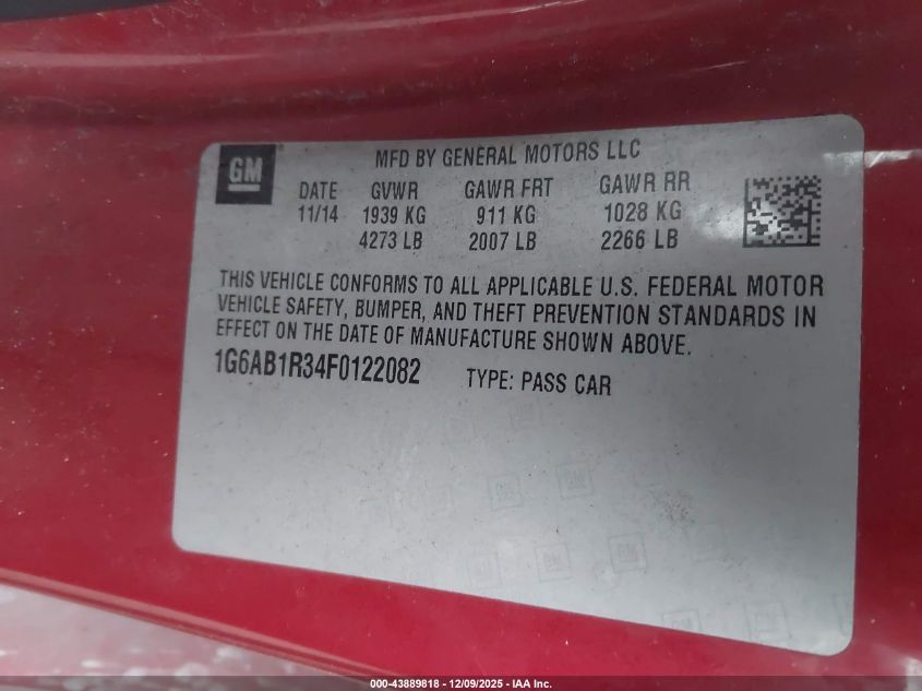 2015 CADILLAC ATS 2015 року Бензин, 3.6, Задній привід, vin - 1G6AB1R34F0122082 з США