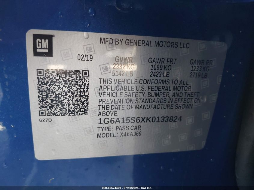 2019 CADILLAC CTS 2019 року Бензин, 6.2, Задній привід, vin - 1G6A15S6XK0****** з США