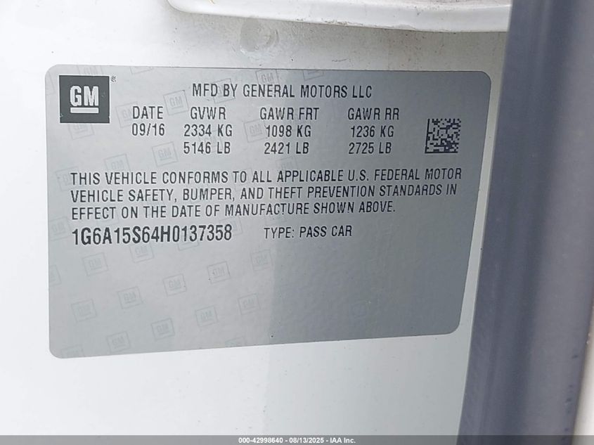 Колір БілийЦиліндри 8Привід Задній привідVIN 1G6A15S64H0******Стан НевідомоУшкодження Задня ліва