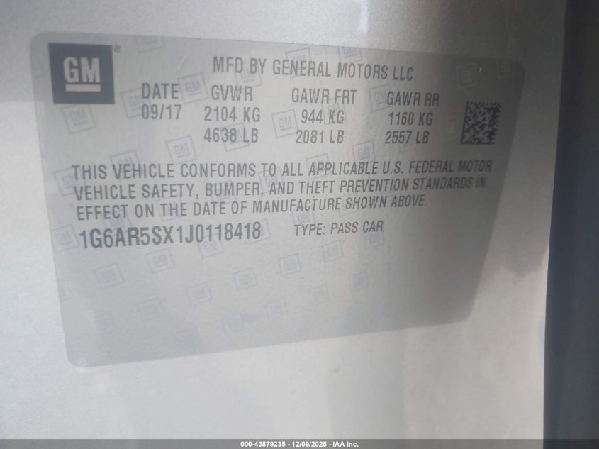 Колір БілийЦиліндри 4Привід Задній привідVIN 1G6AR5SX1J0118418Стан Заводиться та їде (перевірено)Ушкодження Передня або задня AutoRIA