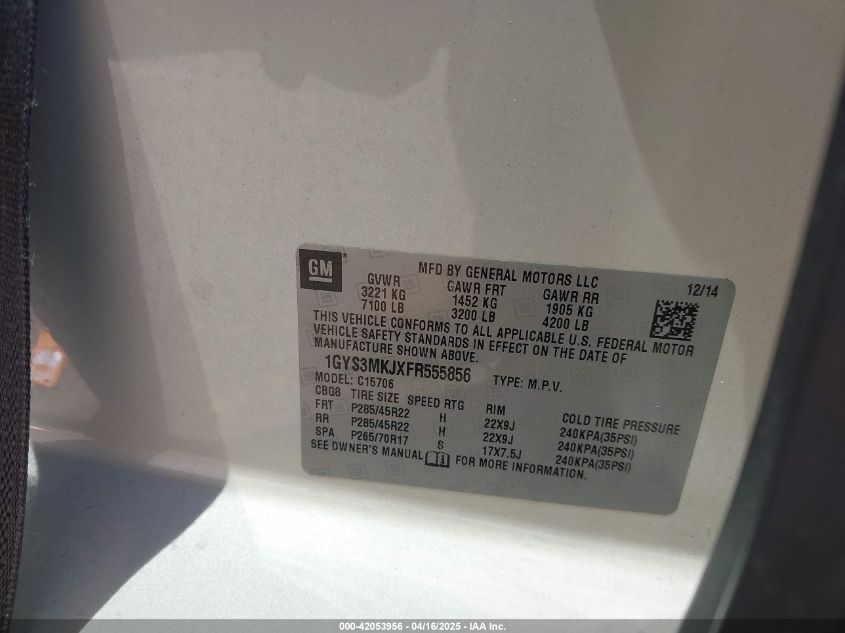 2015 CADILLAC ESCALADE 2015 року Бензин, 6.2, Невідомо, vin - 1GYS3MKJXFR****** з США