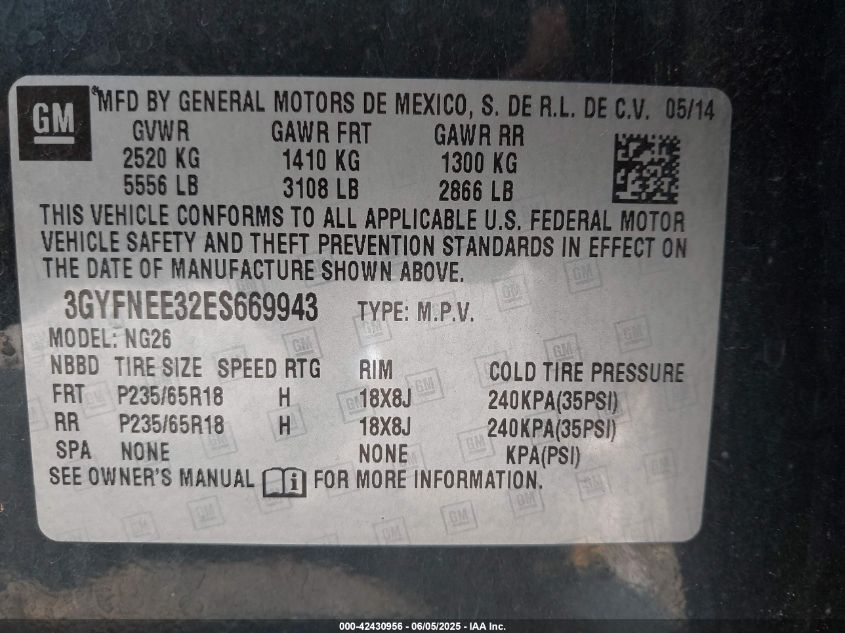 2014 CADILLAC SRX PERFORMANCE COLLECTION