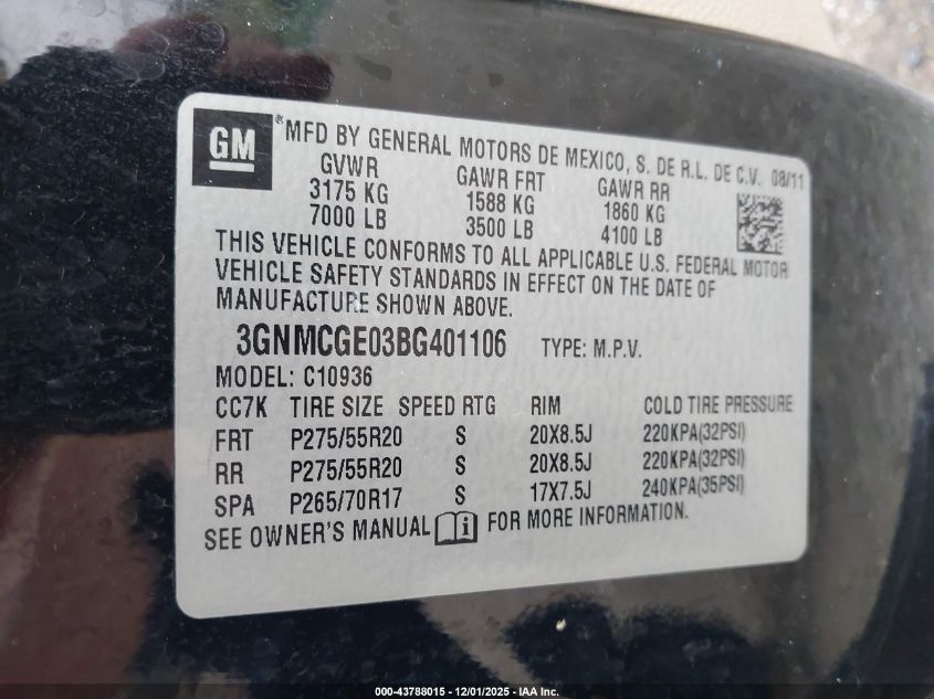 Колір ЧорнийЦиліндри 8VIN 3GNMCGE03BG401106Стан Заводиться та їде (перевірено)Ушкодження Звичайний зносДата аукціону 2025-12-23
