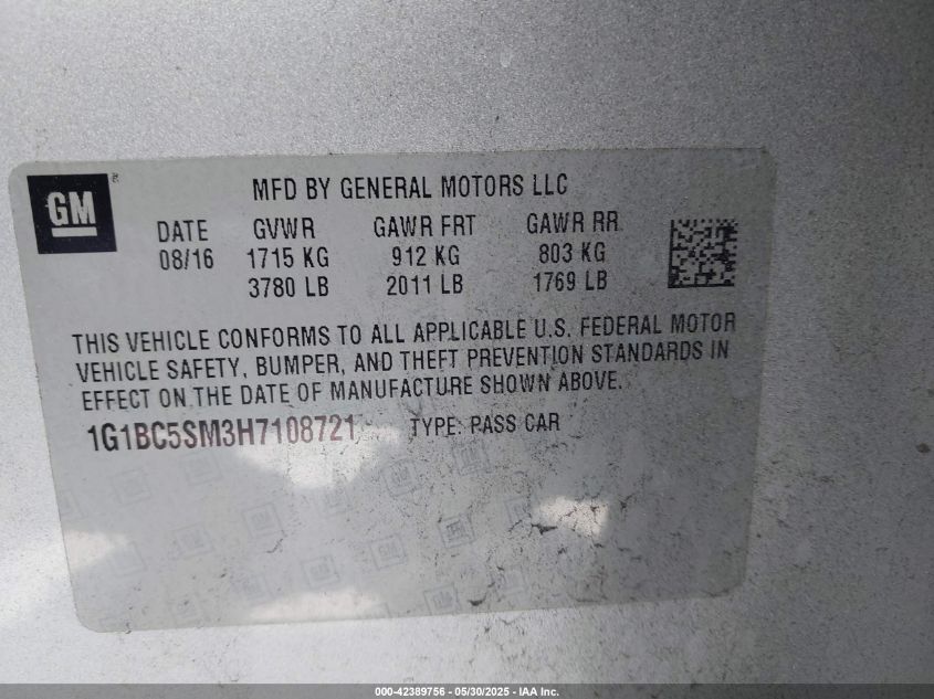 2017 CHEVROLET CRUZE LT