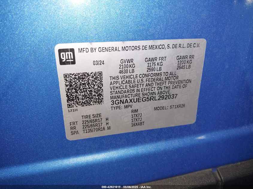 2024 CHEVROLET EQUINOX 2024 року Бензин, 1.5, Повний привід, vin - 3GNAXUEG5RL****** з США