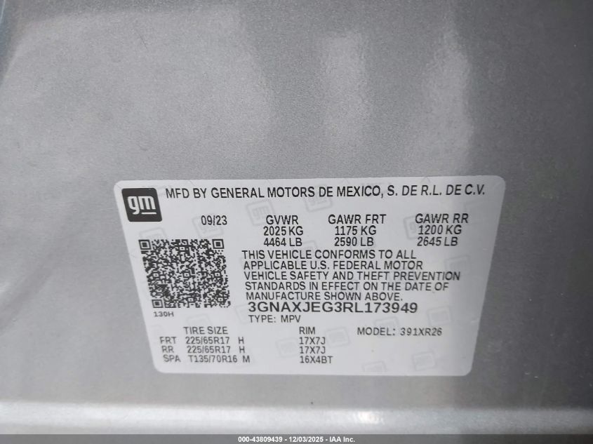 2024 CHEVROLET EQUINOX 2024 року Бензин, 1.5, Передній привід, vin - 3GNAXJEG3RL173949 з США