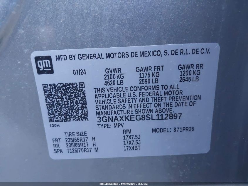 2025 CHEVROLET EQUINOX 2025 року Бензин, 1.5, Передній привід, vin - 3GNAXKEG8SL112897 з США